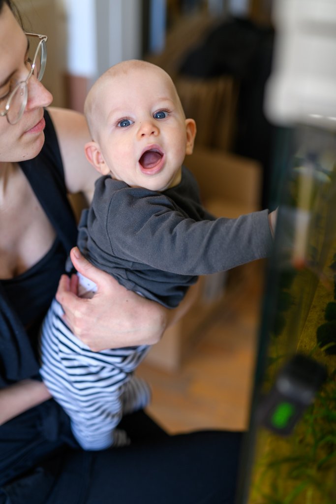 Observation attentive des poissons et des crevettes de l’aquarium…